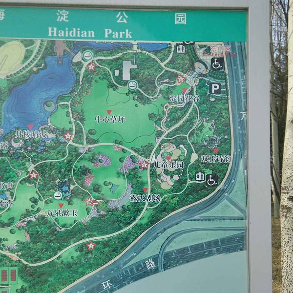 实用 海淀公园是北京老百姓周末休闲游玩的好处所。公园的大门流畅的线条,极富动感,很有现代建筑的风格海淀公园是北京老百姓周末休闲游玩的好处所。2017年2月底的一天,我因事到中关村,坐333内环海淀桥西下,步行10分钟慕名来到这里。它位于北京西四环万泉河立交桥的西北角,是在北京三山五园——畅春园的遗址上修...海淀公园是北京老百姓周末休闲游玩的好处所。2017年2月底的一天,我因事到中关村,坐333内环海淀桥西下,步行10分钟慕名来到这里。它位于北京西四环万泉河立交桥的西北角,是在北京三山五园——畅春园的遗址上修建的。公园的大门流畅的线条,极富动感,很有现代建筑的风格。海淀公园的面积不是很大,但规划很好,大大的草坪,密布的水网,特别适合周末和家人一起来休闲虽然是早春,湖水刚刚化冰,树还未返青,但可见成群结队的锦鲤欢快的游着,憋了一冬天,您能感受到他们自由的快乐。站在桥上,看着这群小精灵,有木有西湖花港观鱼的赶脚。早春乍暖还寒,来公园游玩的人并不多,景色虽有点萧条,但在蓝天的映衬下,别有一番风韵和煦的阳光照在身上暖洋洋的,微风轻拂,呼吸着清新的空气,在帝都久违的蓝天下,那叫一个爽!古老的水车,穿过岁月,悠悠的诉说着历史的沧桑。高大的树木,修整得很好的草坪和步道,漫步其间心情格外舒畅。中央的大草坪很适合带着孩子放风筝,喜欢野营的朋友有福咯,公园里专门留出搭帐篷的一块地,就在大草坪的边上,周末带着孩子来这里,支起帐篷,和孩子一起在草坪上撒着欢玩,放放风筝什么的,累了,到帐篷里眯一会,休息休息,真的是很惬意哦公园里的收费游乐场进门就要收费,不过进去后里面也有一些项目是不收费的,可以带孩子去玩玩。游玩时间2小时左右,公园是免费的,交通比较方便,有740、983、运通108、113等多路公交可达。 展开