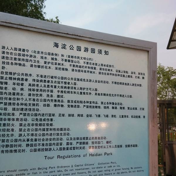 这里的道路非常的平台,周边有树木绿草,见不到供游人,在这里锻炼身体,休闲欣赏,还有许多晓得草坪...海淀公园是一个为周边居民修建的娇野式的休闲公园,这里的道路非常的平台,周边有树木绿草,见不到供游人,在这里锻炼身体,休闲欣赏,还有许多晓得草坪供孩子们和家庭在这里度周末,这里的景色春夏秋都非常美。