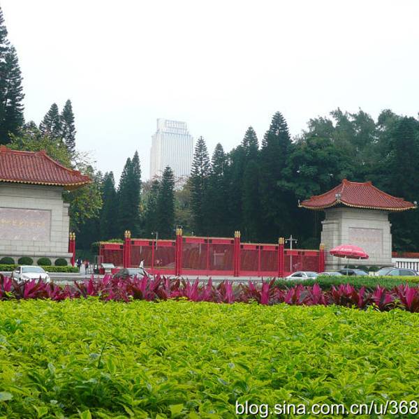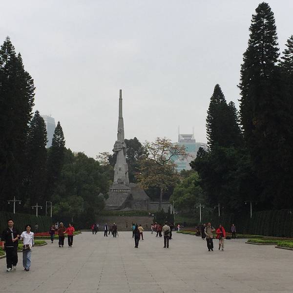 从农讲所出来,午餐,再步行到东边的广州起义烈士陵园。来到广州起义烈士陵园正门前花坛从农讲所出来,午餐,再步行到东边的广州起义烈士陵园。