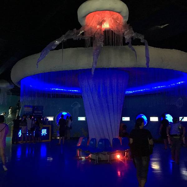 景点门票150元,我们在住宿的店里拿的票,120元每个人。但其实这种优惠票是属于散客拼团的,我们后来跟着一个旅游团一起进去了,就是要等着别人一起,在门口点人数花了一些时间。进去后就自己玩耍,也还好,很自由。在门口点人数的时候,导游不断推销四楼的一个动感体验的门票,说得天花乱坠的,什么亲自感受,全世界仅此一家,我们没忍受住诱惑买了票,从40块讲价到30块一张,但是体验的时候无比失望,其实比火车站地下通道里的7d动感体验还不如,时间就5分钟,出来之后只有满满的被坑的感觉。但除了这个项目,整个极地海洋世界还是很值得参观的。整个馆有四层楼,比青岛的海洋世界大得多。有两场表演,一个美人鱼表演,在二楼,每隔40分钟一场。这个表演座位很少,而且没有专门的场馆,观众就坐在过道上,所以人很多,我们没抢到位置。这个表演就是一群美女穿上美人鱼的尾巴在水底跳舞,还是很厉害的。另一个表演是海豚表演,时间比青岛那个馆短,表演也一般。此次之行最喜欢的是,场馆一楼的热带雨林区,热带雨林在灯光的效果下如身临其境般,很震撼。另一个就是水母馆,大大小小各种各样色彩丰富的水母在水中游荡,简直太美了。蓬莱极地海洋世界显然值得一游,但是馆内还是显得商业气息过于浓重,里面有不少项目是自费的,比如说喂北极熊啊、海豹啊、海龟啊等等。 展开