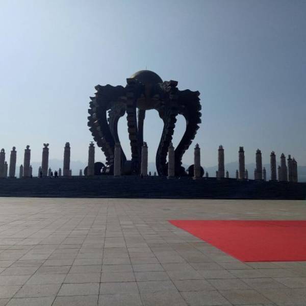 去的时候是淡季,也没什么人,由于是一票通,先去看了三足鼎,远处看到那个鼎还不觉得很大,可是近距离观看才发现那种震撼感,真的很大!周围有五十六根柱子,象征着五十六个民族,柱子上有代表的民族,有风俗,...