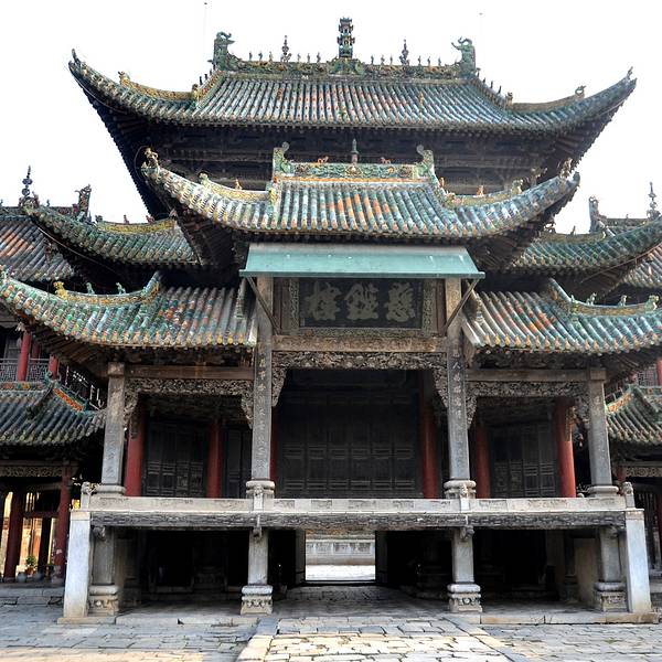 具体介绍看景点介绍吧,当地人说雕梁画栋比得上故宫了,依我看也许技法上有长处,跟故宫比,那肯定是...