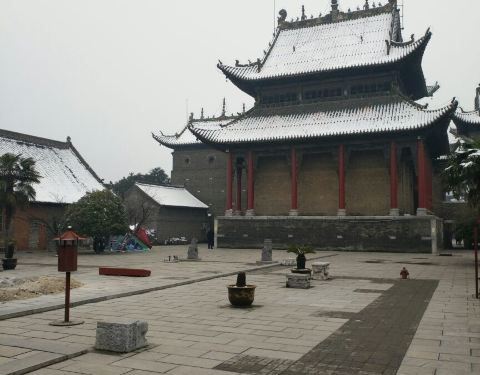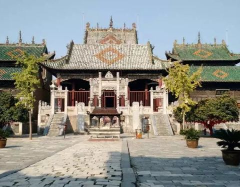 门口看起来真的感觉不到什么,只有一个一面琉璃照壁,这里位于社旗县城中心,在过去这里水陆交通非常发达,是南船北马商人的云集之地,这里还有七十二行祖师堂,看起来很有气势。