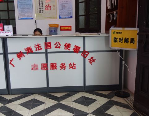 门口只有三几个停车位。一楼是一些无关的展览,二楼才是介绍本建筑的。有当初租借广州湾的协议,很多很珍贵的旧图片旧物件。广州湾和香港相仿,都是被租借,只是我们更早收回来。