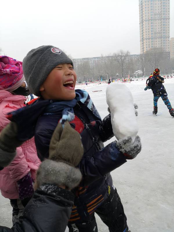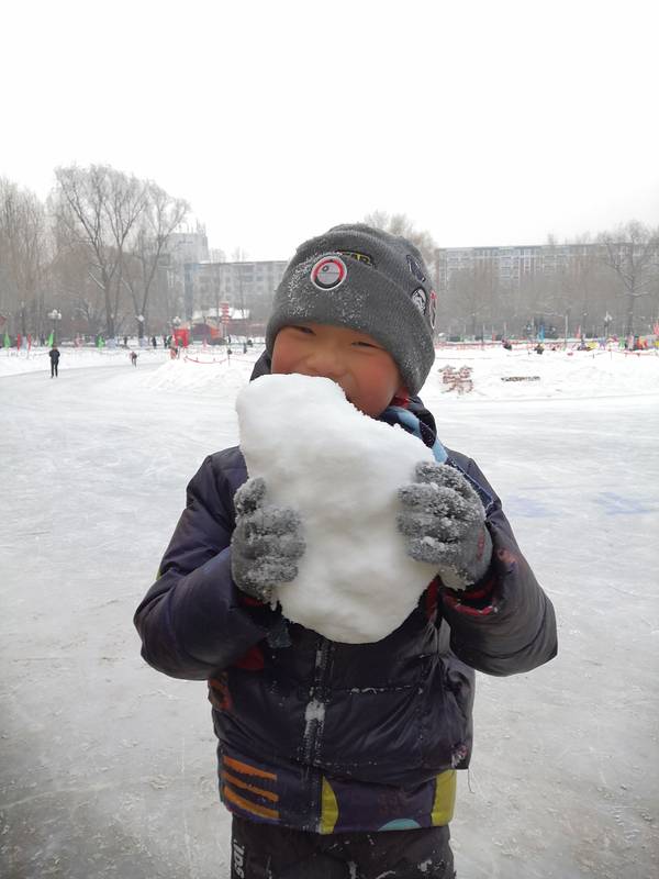 不过摔完竟然能躺在冰上仰天哈哈乐!完全放松下来!孩子享受大自然的赠予
