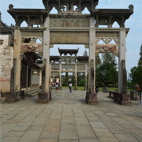 棠樾村也是一座古村,有超过800年的历史,这里最有名的就是棠樾牌坊群,一座古村内有七座明清古牌坊
