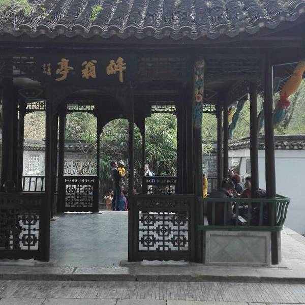 一进入景区,我们便乘坐景区旅游巴士来到第一站:”醉翁亭“。