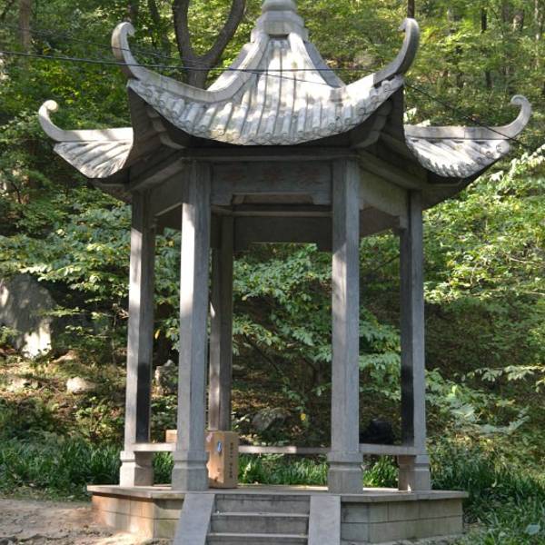 继续向里走,左手有山间溪泉,都是流动的活水,在这里贴近自然洗洗手和脸,非常清爽,洗完回来继续沿大路向前一段,右手就到了醉翁亭景区。整个景区大概半小时可以看完。再一路向前开始有分岔口,一条向上通往同乐园,一条继续向前通向琅琊寺和琅琊山主峰南天门,我选择继续向前,后来知道同乐园背后有一条古道可以向上爬到南天门,比我选择琅琊寺上山的道路要远而费力,但更加僻静而神秘。