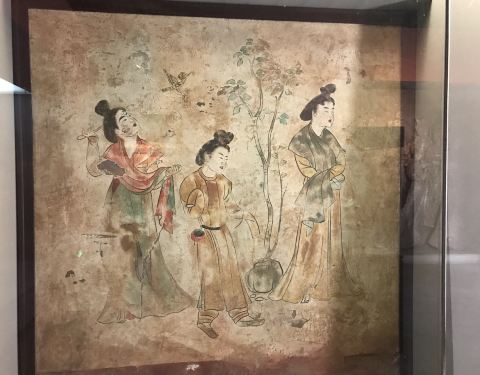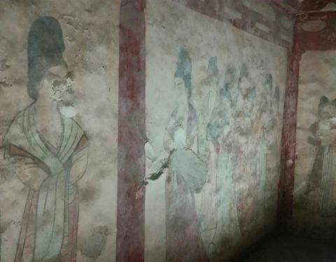 永泰公主墓就在乾陵博物馆内,穿过长长的墓道,有点凉飕飕的。墓道两侧还有残存的部分壁画,圆形的墓道顶上也有彩画装饰,据介绍说两侧壁画中靠下的一部分被整体切割下来在陕西省历史博物馆保存,墓道中间的两侧...