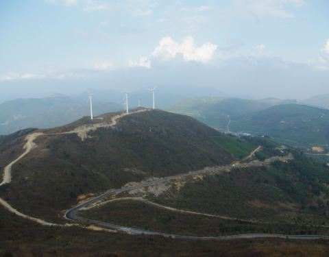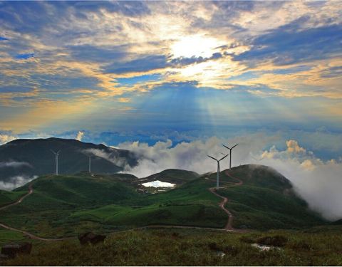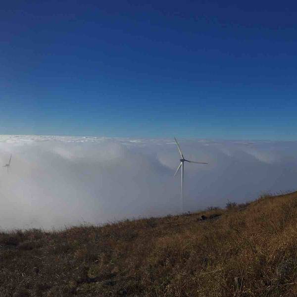沿着还算好的山路开上两个小时,就到了山顶,山顶其实是一大片相对平坦的草地,几个山峰看上去就是小山丘,还有个湖,露营的好地方。晴天时,发电风车是好景色。