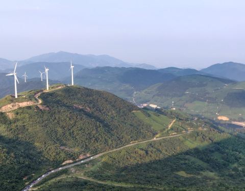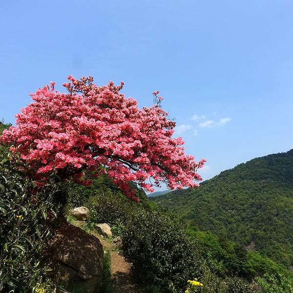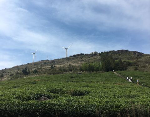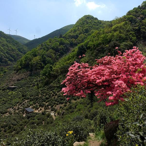 后来我们还是去了东白山,竹林,山路,茶园,并无特色,也许是因为我们没有登顶的缘故吧后来我们还是去了东白山,竹林,山路,茶园,并无特色,也许是因为我们没有登顶的缘故吧。我们只爬到半山的茶园龙门顶,这里有两棵美爆了的杜鹃。从这里也能看到山顶的风力发电机,大风车缓缓转动。