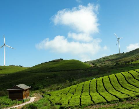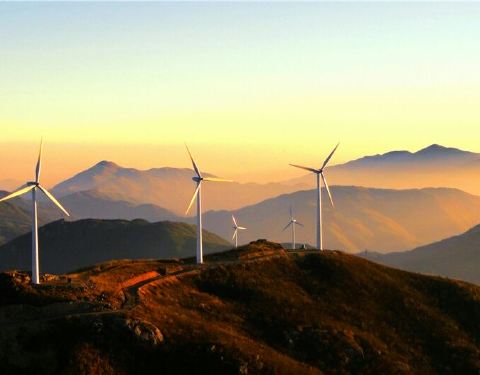 晴天时,发电风车是好景色