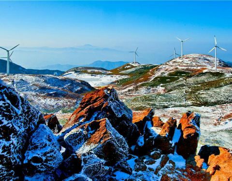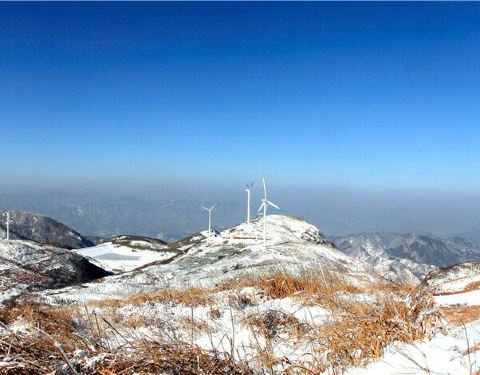 晴天时,发电风车是好景色沿着还算好的山路开上两个小时,就到了山顶,山顶其实是一大片相对平坦的草地,几个山峰看上去就是小山丘,还有个湖,露营的好地方。晴天时,发电风车是好景色。