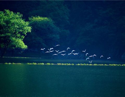 相传是七仙女沐浴嬉水的地方,至今岩石背上留有仙女下凡时踩的脚印。千姿百态的岩石让人耳目一新。