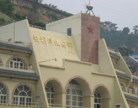 延安新闻纪念馆背倚清凉山,在河边,能看到宝塔山。窑洞形式的新闻纪念馆。喜欢读史的一定要进去看看。