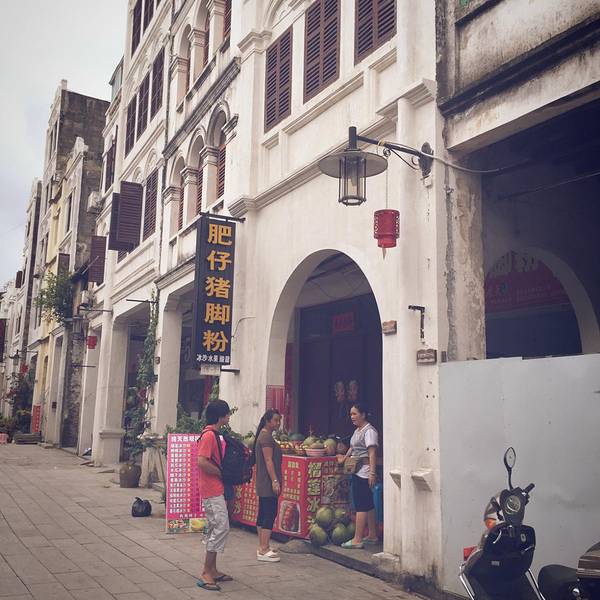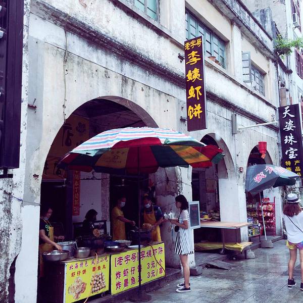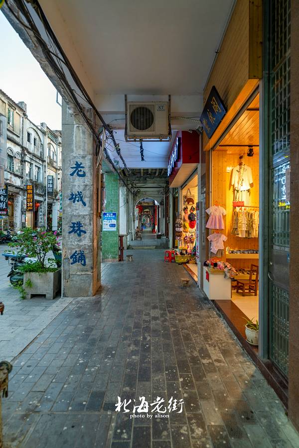 金骆驼 北海的景点除了涠洲岛和银滩,就数这北海老街了吧。可是旺季游客多的时候,需要排队等待北海的景点除了涠洲岛和银滩,就数这北海老街了吧。北海老街主要就是指珠海路,这条长约1.5公里的街道已经有100多年历史了,最有看点的就是那些中西合璧骑楼式建筑。这种建筑有自己的地域特色,又吸收了岭南建筑...北海的景点除了涠洲岛和银滩,就数这北海老街了吧。北海老街主要就是指珠海路,这条长约1.5公里的街道已经有100多年历史了,最有看点的就是那些中西合璧骑楼式建筑。这种建筑有自己的地域特色,又吸收了岭南建筑的特点,还吸取了西方建筑的一些艺术风格,并且可以商住两用,临街的部分用来开店,后面是居住的地方。临街的骑楼部分既是道路向两侧的扩展,又是铺面向外部的延伸,人们行走在骑楼下,既可遮风挡雨,又可躲避烈日。如今失去昔日繁华的骑楼日渐老化,湿热的天气致使外墙上长了一层淡淡的青苔,生锈的路灯下盘缠着绽放得灿烂的花朵,刻于墙面之上的老店名也仅是依稀可见。当新开的小店把英文标牌挂上骑楼外墙时,刹那间竟有了几分澳门小街的味道。而当我看着商贩和店铺卖着各种珍珠加工品、杂货、丝绸、干海货、渔民用品还有G7咖啡的时候,加上从窗户伸出的三角梅,又恍惚以为自己在越南。老街的风情还蛮多样的。老街上还有不少现代气息的咖啡厅和酒吧,门面不大,看起来和老街一样的残旧,内饰和装修和老街的骑楼融为一体。可以点上一杯喝的,在屋里感受时光岁月的痕迹。由于时间关系,我没有找店坐,只是买了杯芒果沙冰,10元钱,很纯正,各种水果沙冰也算老街特色。来之前就从网上看到这家李姨家虾饼特别有名,本来没报什么期待,结果吃完真的很好吃,虾饼里真的有很多新鲜虾子,有些还是活的,因为是现炸的,所以口感特别好,除了虾饼,老板卖的墨鱼丸等等味道也不错。可是旺季游客多的时候,需要排队等待。小建议:①其实北海老街这称呼是被人们喊出来的,指的是珠海路和中山路一带,更狭窄点说就是珠海中路了,有些地图APP直接搜北海老街是搜不出来的,那就搜珠海路吧。②因为老街这边公交车不能到,所以从停靠的站点走过来还有些距离,大概10分钟。③虽然说古街卖虾饼的很多,最好还是选李姨家的,我专门买来对比了下,果然李姨家好吃很多,排队也值得。④老街里还有一条逼仄的小巷,俗称“摸乳巷”,只能容下一个瘦人单向行进,比较有特色。⑤古街里卖的东西价格还行,珍珠和咖啡都比较便宜,可以买些。