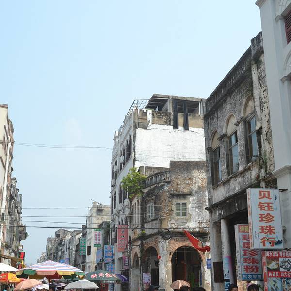 1--北海老街简介:北海老街,是位于广西壮族自治区北海市珠海路的一条有一百多年历史的老街。珠海路老街长1.44公里,宽9米,始建于1883年,沿街全是中西合璧骑楼式建筑。随着时间的推移,珠海路逐渐失去了昔日的繁华,除了稀稀落落还有屈指可数的几间店铺经营渔具外,其他店铺已几乎成为民居,街道建筑日渐老化,但由于珠海路尚算保存完整,仍被历史学家和建筑学家们誉为“近现代建筑年鉴”。