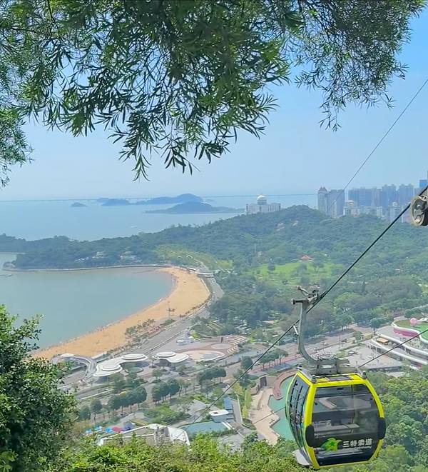 这里最动人的是城中小城般的宁静氛围。景山索道位于珠海老城区与情侣路交汇处,身处繁华却自成清幽,没有商圈的喧嚣拥挤,也没有景区的浮躁喧闹,从山脚到山顶都保持着温和舒缓的节奏。山脚步道整洁干净,绿树环绕,空气清新;山间林木葱郁,视野开阔,微风拂面;山顶视野辽阔,可俯瞰全城风貌与碧海蓝天,远眺日月贝、港珠澳大桥与澳门城市轮廓。行走其间,没有匆忙的人流,没有嘈杂的声响,只有自然的风声、树叶的轻响,让人一踏入便放下疲惫,沉浸在从容安逸的小城气息里。无论是漫步山间、乘坐索道,还是在山顶静坐观景,都能感受到这份难得的松弛感,是都市中难得的清净角落。