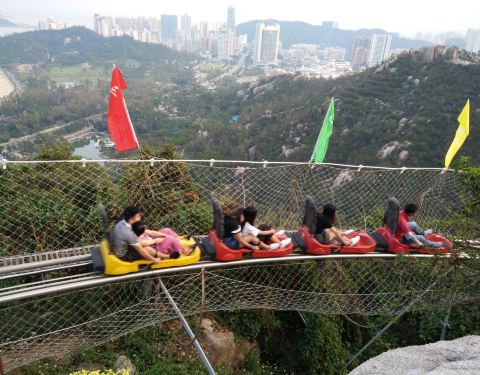 珠海景山观光索道、滑道项目位于珠海城市中心的石景山东麓,临香炉湾畔、情侣路海滨,是畅玩珠海的主要景点之一。珠海景山观光索道下达“城市阳台”、上联珠海空中栈道“珠海∙景山道”, 360度观景平台可远晀香港、澳门,珠海渔女、珠海大剧院、“港珠澳大桥”等珠海市地标性景观,在城央之上的视角感受不一样的珠海!景山滑道采用德国进口新生代产品,新增720˚双层盘旋道,弯道设计、涡流减速系统既刺激又具有安全性。从山顶乘滑道直达山下,在夕照黄昏之际,更有着追逐落日向晚的浪漫,是网友们争相打卡的“落日飞车”。