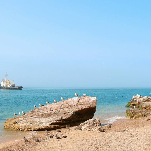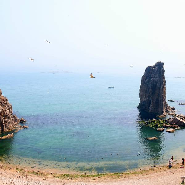 因为有了黑尾鸥这群生物的存在,海驴岛的神话传说也变得黯然失色,游客更多的目光聚集在与黑尾鸥的嬉戏玩耍,或惊叹于千万年来被海浪侵蚀得危峰兀立、怪石嶙峋的这座海岛。要想与黑尾鸥亲密接触,除了等它来找你“天降好礼”,你也可以为它准备一些礼物来吸引它的光临。买一桶新鲜的鱼,抓一条举起手来,很快黑尾鸥就会朝你飞来,这个时候,你不妨挑逗它一下。