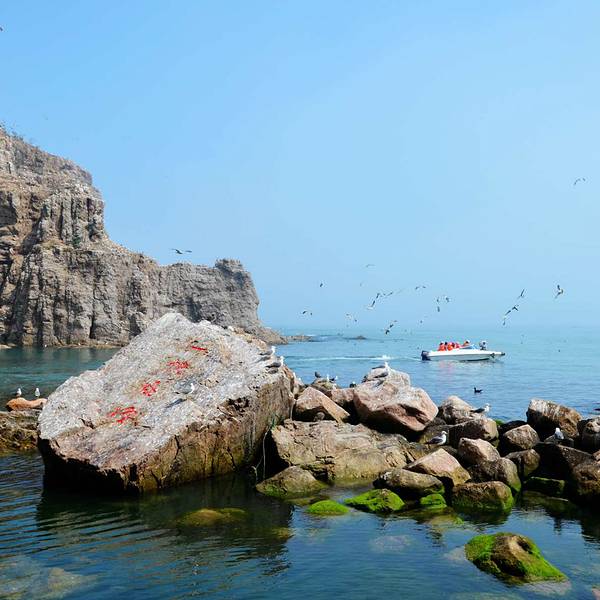 【海驴岛2018年起停止登岛】 海驴岛素有“海上仙山、鸥鹭王国”之美誉,它距陆地2海里,是一座融神话传说和美妙自然风光为一体的仙岛鸟国,它高耸独立于波涛汹涌的大海之中,遗世独立。它是一方生命的乐园,黑尾鸥和黄嘴白鹭在这里同栖共生,演绎着自然生命的神奇。 关于海驴岛的由来,当地流传着一个美丽的神话传说。相传当年二郎神奉玉皇大帝之旨,担山填海,修建东京。百鸟欢跃,噙石为助。一天,二郎神正挑着两座大山走在成山头附近,忽然听到东海之中有驴嚎,西海之岸有鸡鸣,一惊之下,扁担骤折,肩挑的两座大山坠入海中,化为两座海岛,东边为海驴岛,西边为鸡鸣岛。而折断的扁担化作了两根数十丈高的石柱,一截在鸡鸣岛后侧,一截在海驴岛后侧。而那些跟随二郎神噙石填海的鸥鸟也就成了海岛的主人,它们年复一年、生息繁衍,便有了今天几十万鸥鹭遮天蔽日的奇观。正是仙人不知何处去,此地空余仙鸟鸣。 海驴岛并不大,但方寸之间却有着无穷的乐趣。如果巧逢海雾弥漫,只见海天飘渺,鸥鹭时鸣,出没雨雾之间,仿佛置身仙境。西伯利亚的海豹每年春天都会来这里度假,幸运的话,会发现成群的海豹在扁担石东侧的海岩上晒阳休憩。 岛上兀立的危峰和嶙峋的怪石就是鸥鸟们安全的栖所,周边海域富足的鱼虾提供了小鸥们生存成长的食物,还有岛上适宜的气候和天然无污染的环境,使海驴岛成了北方黑尾鸥繁殖期的不二选择。在这里还诞生了历时七年创作而成的第28届金鸡奖电影——《天赐》。 成片的芙蓉丛、芦苇、野枣树,白鸟红花相映成趣。隔海望去,悬崖陡壁,花团簇锦。海驴岛被千万年来不知疲倦的海浪冲刷雕蚀得危峰兀立、怪石嶙峋,与起落的海潮、连天的波涛、精灵似的鸥鹭共同构成风景独特的海岛风光,令人遐思不断、流连忘返! 备注:海驴岛因受天气原因影响较大,具体当日是否开航,请留意官方信息。