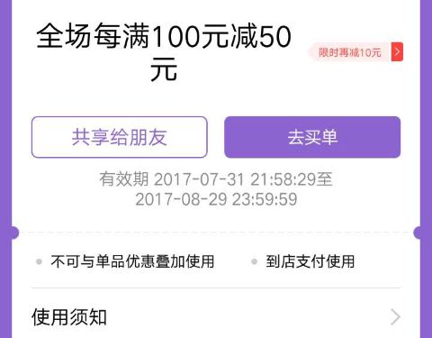 - 明明该商家在口碑专属优惠里面有满100减50以及限时立减10元的优惠活动,领取了相关的优惠活动...
