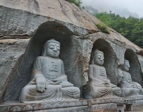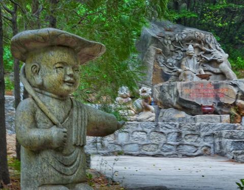 幽谷神潭位于怀柔城区东北25公里的云蒙山南麓,来到这里就想起了上学的时候学的《小石潭记》。每年4月份杏花一簇簇一团团盛开在山水之间,美不胜收。景区内山高林密,溪流纵横,二十多种天然奇观中尤以“神潭”和“飞瀑”贯绝京郊。飞瀑分为上下两叠,坐落在峭壁之上,流水飞溅,水势较大,为奇特之处在于两条瀑布夹一潭,而三者和两侧山体为一整块花岗岩。除此之外,这里还有以十二生肖故事和佛教文化为主题雕刻的石刻区近万平米。以十二生肖故事为主题雕刻的作品有老鼠娶亲、五牛纳福、龙生九子、蛇盘富贵等;以佛教文化为主题雕刻的作品有双面卧佛、观音、三世佛、济公、艺术罗汉共116尊,其数量在华北地区屈指可数。景区餐厅中还供应中华传统面点、丰盛的农家大餐,风味的虹鳟、兔头等美食,方便游客用餐。