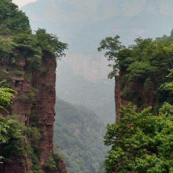 九莲山景区大门靠近八里沟景区大门,我们买的联票,两天有效,一天玩了两个景点,很匆忙,没有尽兴,对于我们来说八里沟玩一天,九莲山玩一天比较好,建议大家九莲山玩一天。我们进入景区乘车去九莲梯停车场,游玩了九莲潭 天壶瀑布.天壶瀑布落差大,也很壮观,好看。接着从有999个台阶的九莲天梯登上小西天景点的,在登台阶的过程中,随着高度的增加 看着下面峡谷的变化,越来越美,非常的壮观豪迈,气势磅礴。天门口景观气势雄伟,时间关系匆忙的乘坐电梯下山。九莲山玩一趟值得!