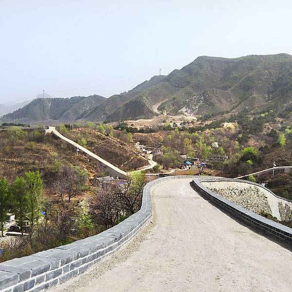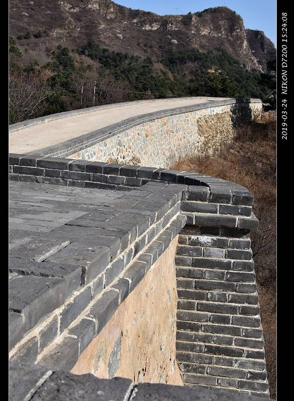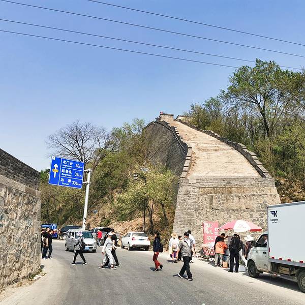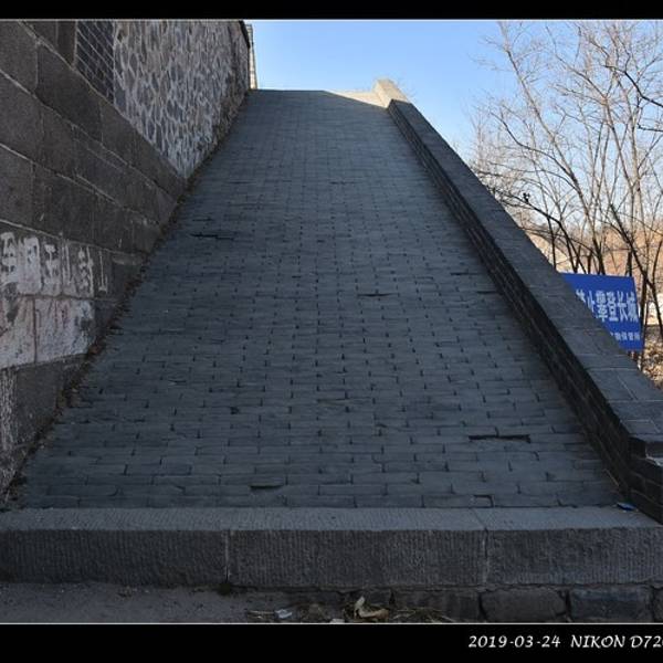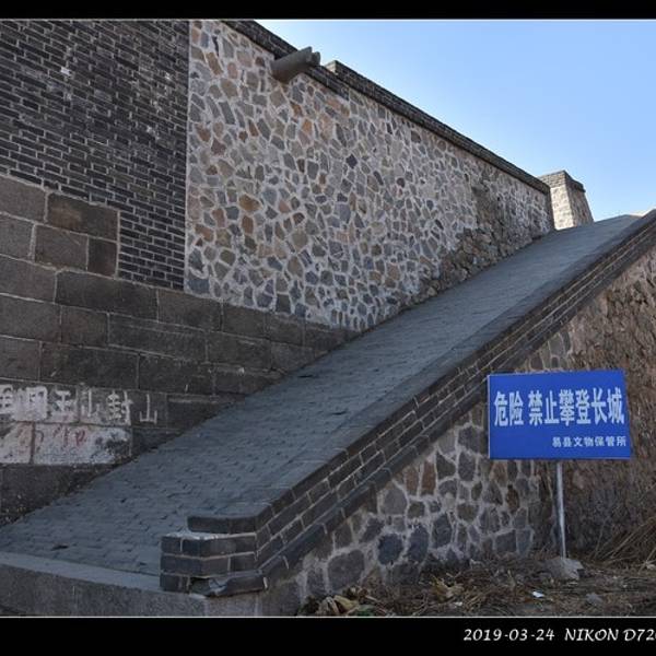 我是大约下午两点多到达的“紫荆关”。 从“张石高速”的紫荆关出口下了高速,导航显示:到达目的地附近!可周围都是国道呀?! 无奈先是上网搜索,说是下了高速50米即是;然后问路人,确实前方拐过一个弯就到了,距离高速口也就一二百米,开车真方便。 我看到国道边上有一片黄土空地,上面停了若干私家车,心想这大概就是景区吧?于是把车也停在这里。不过停好车后发现此处并没有什么景区入口,经询问后得知,需要步行前往村子里登城。 这“紫荆关”长城也是奇了! 我登上去后极目远眺,光秃秃的只有整齐的夯实的城墙底座儿,而这城墙的两侧都没有垛口或女墙!成土堆儿了? 而且吧,在这城墙上行走却没有一级台阶,全是夯实平整的黄土泥地。好在现在天气不错,如果要是赶上下雨下雪,那可是寸步难行呀! 这紫荆关好像不是为游客观览翻建的?这路面不是没有台阶,就是落差极大!我斗胆几次尝试跳下去都没敢,也只能从边上的山坡荆棘路上走下去。(后来在山下看到有其他游客从高处跳下来) 我在山顶上远眺对面的城墙时就看到有不少游客在上面游览。 等我从荆棘小路上出溜下来,到了对面的长城处,这时才发现一个“禁止攀爬”的警示牌。我都在长城上玩了一溜够下来了,才看见不让爬的牌子也是讽刺!况且这里也不是景区也不收门票,况且上面还有那么多游客。 这个上城墙的斜坡路同样没有台阶,和我刚才上去的路相仿。等我上去后发现,脚下的路面难度强度加大了:还是那种平整的土路,但是坡度很大!