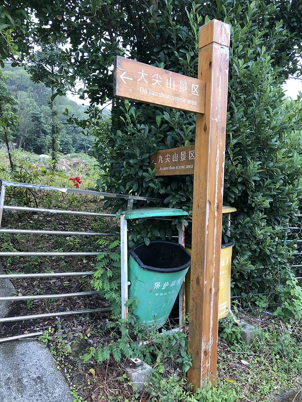 里面还有一个烈士墓园门票20时不时的毛毛细雨最惊喜的是在爬山途中看到了北回归线 很酷dab左脚热带右脚北温带jump走了一个半小时以为到顶了然而距离大尖山顶还有海拔90多米 30层楼 所以我们果断回头走到生无可恋脸😐看一下山顶当来过大尖山下面有个九尖山九尖山到此一游下山快很多 一个小时就下去了然而还是被滴滴司机坑了 他说我们走的时候到门口小卖部那里有车可以搭回去