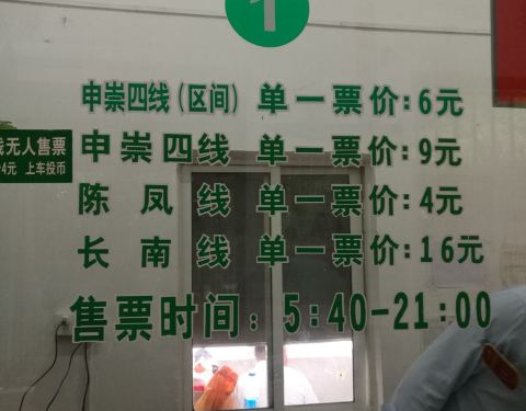申崇四号线车,由浦东科技馆站直达【长兴岛】,运营时间为6:00至21:00,20分钟一班,票价9元。