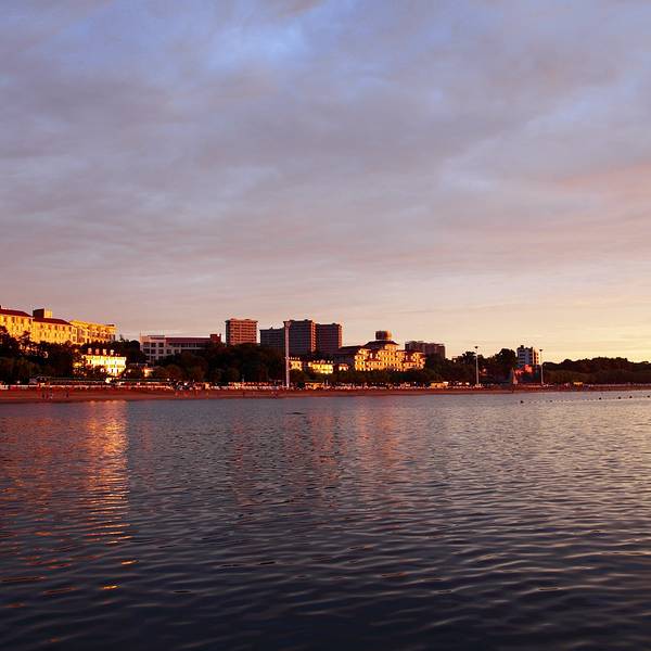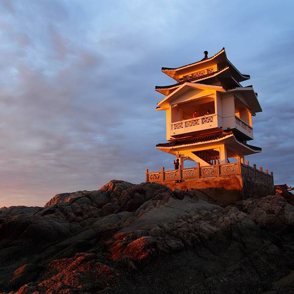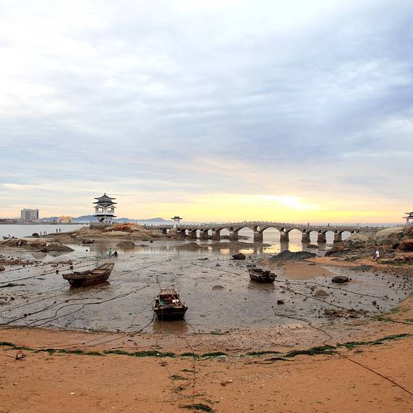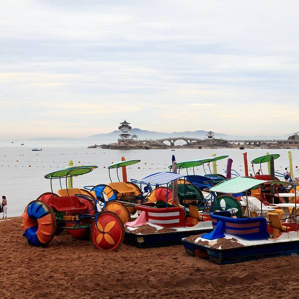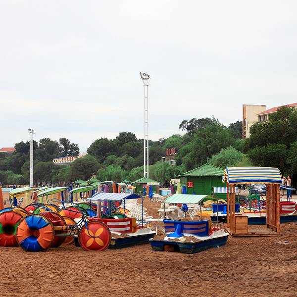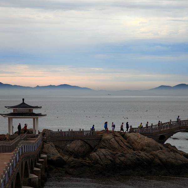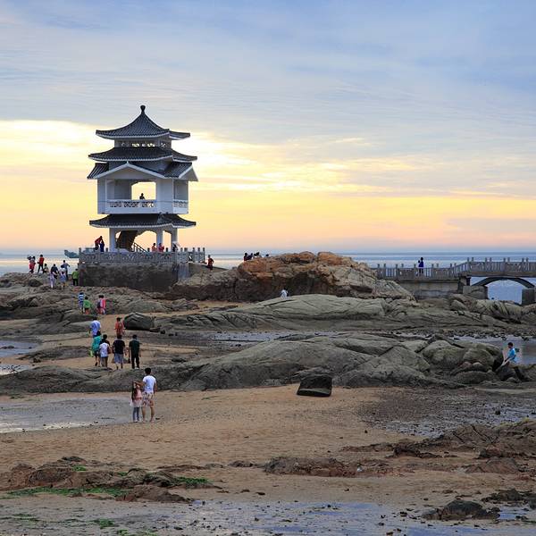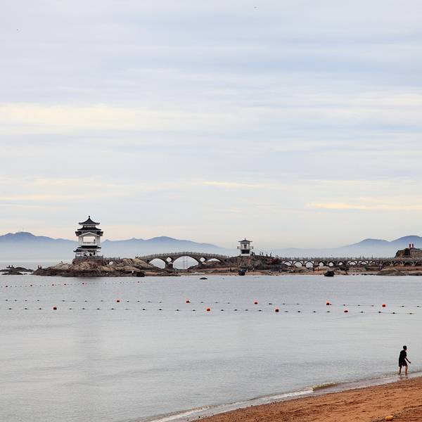 兴城海滨风景区位于兴城市区东部沿海的兴海湾,是一片长约1.5公里的天然海滩。这里地处渤海北部海岸,沙滩坡缓宽阔、水质洁静,有多个海水浴场和各种嬉水游乐设施。每年夏季,众多游人来这里游泳、赶海、晒太阳,或是全家人来吃海鲜,这里也是拍摄日出的好地方。 来到兴城市区东部、滨海公路南段的环岛处,会看到一座牌坊,这里就是海滨的入口,可以望见海边矗立着的菊花女雕像,诉说着一段动人的神话故事。海滨浴场内沙滩较软,水中无暗礁,适合游泳戏水,还可以坐快艇兜风(价格较贵,可砍价),每年夏季都可见海边人潮涌动的景象。不过,不同于南方的沙滩,这里的沙质还是相对较粗的,这儿的更衣冲凉服务约15元每人,停车费小车10元、大车20元。 海滩的北部是游船码头,这里可以乘船去觉华岛风景区,约40分钟船程。海滩南端有名胜景观“三礁揽胜”,在三座盘踞海中的礁石上,各建有一座造型幽雅的观海亭——水上长亭,各亭之间有栈桥相连,可登亭观潮听浪,或者早晨来看日出,也有人在此静心垂钓,十分惬意。如果赶上落潮,里侧的海水退却后海滩半隐半露,还可拾贝、捉蟹,乐趣横生。 海滨有很多露天烧烤摊,周边也有不少海鲜餐馆,可以品尝到各种海鲜,价格还算可以。海滨、兴城古城、海鲜是兴城的三大名片,来兴城一日游,可以上午逛古城、下午去海滨,晚上吃海鲜。当然,若有更多时间,还可以去觉华岛风景区游玩。