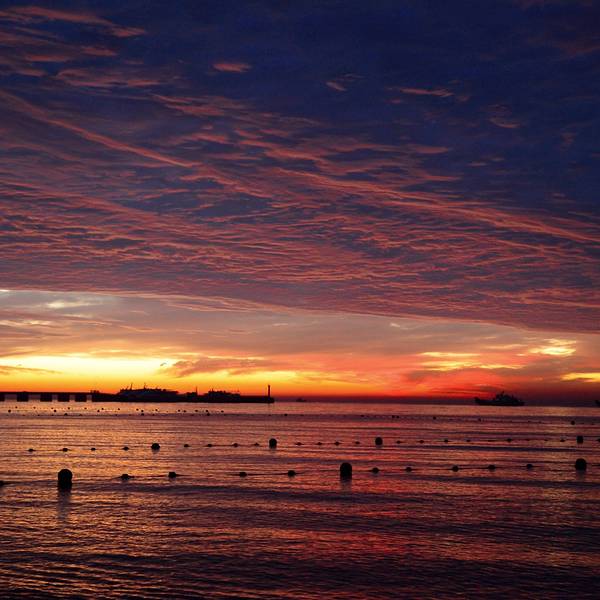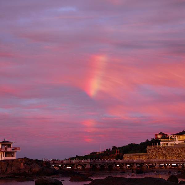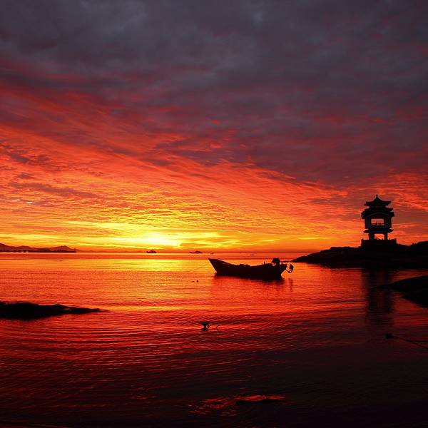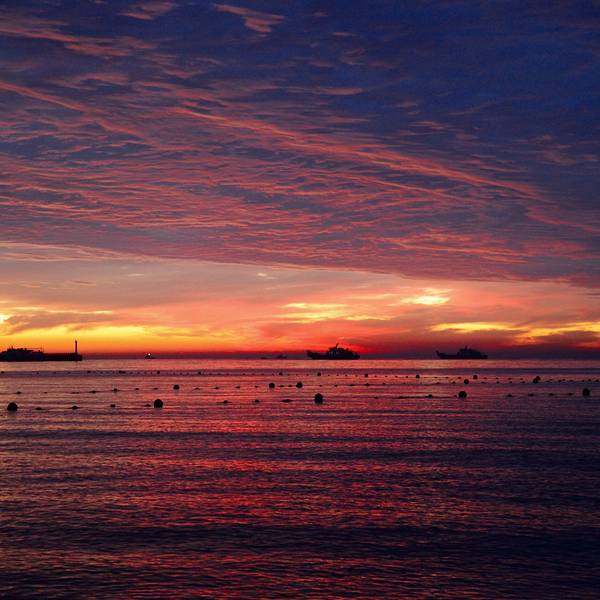 4点钟的时候,我拉开窗帘看看窗外,天边已经出现了非常非常红的几丝红霞,我立刻轻手轻脚的起床穿好衣服,背着相机就下楼了。租用的门卡很方便,我不超过5分钟就到达海边,看着这天边美丽的红霞,心想一会儿的日出会是怎样的呢? 展开