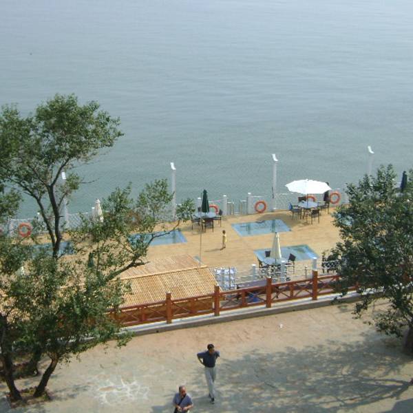 走过木栈道,就看到这片海了。兴城 的海就是干净,吃喝玩乐应有尽有。岸上代客加工,只能清蒸5元一斤九点起床,去餐厅的时候又没早饭了,吃鸡几个鸡蛋,喝了一碗小米粥