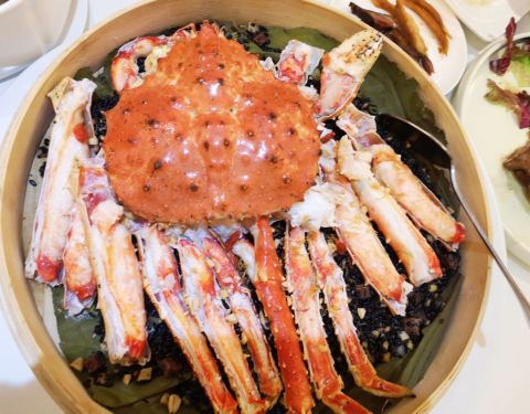 唐宫海鲜舫一直都挺不错的,其中的葱油饼超级好吃,颜值高且美味。帝王蟹与血糯米的结合也是挺有意思的,独具匠心,适合宴请宾客。