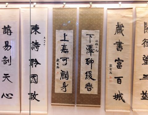 【购物】一楼的主厅有工作人员,有个屋子是陈列的各类书籍和纪念品,应该是出售的,有兴趣的小伙伴可以买一张明信片留作纪念。主楼整体的德式建筑都文艺范十足,老旧的小洋楼,斑驳的砖墙,自带着一股文人墨客的附庸风雅气息,可以直接从外面的楼梯上二楼,依次游览内部陈列的展品。一进门就是康有为的雕塑和生平介绍,旁边的壁橱和书卷纸墨更是凸显的了他文人的身份,整个故居分为三个展厅,分别详细的展示了康有为的生活场所,生平的图片展和收藏的展览馆。一楼展厅区域,桌面上的笔墨纸砚,会客厅以及满屋子的书籍。院内的小凉亭,旁边的就是参天大树,炎炎夏日坐在底下也很凉爽,竹椅和石凳,环境清幽,依山靠海,风景秀丽,对得起康有为形容这里的此屋卑小而园甚大,望海碧波仅距百步之称。 展开