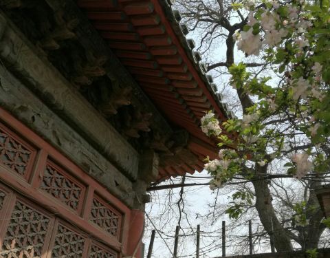 ...,可是院内得建筑异常美丽,大门外的石狮威武霸气,两棵西府海棠每到春天花开花谢像一幅织锦美丽绝伦