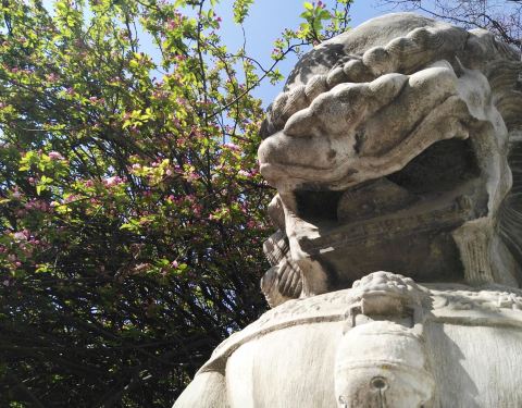 偌大的北京,西府海棠有多少棵不知道,可是能够看到的西府海棠确实不多。 位于还没有修复,被一些出版社占领的孚王府的西府海棠就这样成了喜欢西府海棠的人的最爱。 在孚王府的西府海棠,是守住两座石头狮子的花魁,两头巨狮的头部被西府海棠包围起来,形成植物与人类建筑的完美结合,就像柬埔寨的吴哥窟周围的花梨树,把石窟包围的严严实实,霎时惊目。 孚王府的西府海棠变成了石头狮子的头发,奇特而富余想象力,成为一大景。