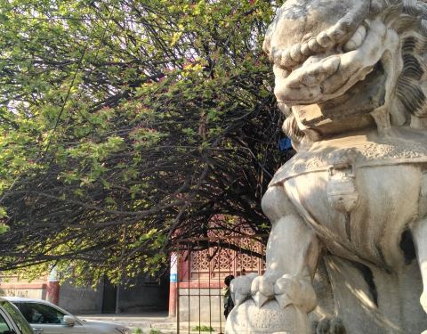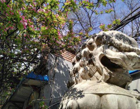 这是一个被滥用的古迹。 虽然没有被开发,可是院内得建筑异常美丽,大门外的石狮威武霸气,两棵西府海棠每到春天花开花谢像一幅织锦美丽绝伦。