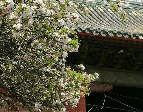 原先,孚王府的大杂院里有一家餐馆,深受附近居民的青睐,初逢西府海棠那回全因为我偷了个懒,从餐馆的后门溜出来抄近路去公交站。可巧,就看到大杂院中两棵如覆绛雪的西府海棠在雾霾之中开得正盛。还好那时候不...