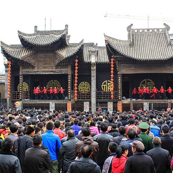 比如,在漫川关古镇中心的双戏楼,这是一座清代建筑,由南式戏楼和北式戏楼两座同向戏楼组成,是中国唯一的一座联璧式双戏楼。