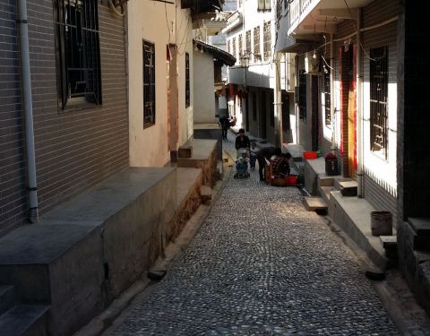 古镇的老街依山顺水而建,街道笔直而曲折有度,屋宇高下错综,檐下墙角全为碳墨素描壁画,极为传神,屋檐窗棂木雕精良,古朴大方。