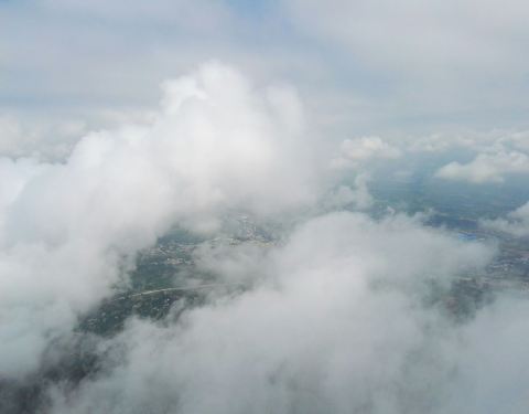 晨起登上山顶,云雾环绕,如临仙境