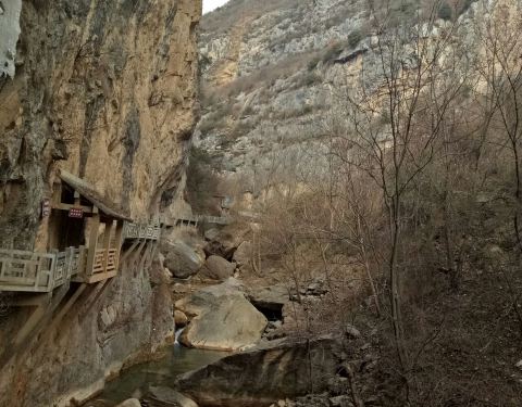 修建在岩壁上的黑虎栈桥走上去挺平挺稳,不像有些地方的悬梯栈道“吱嘎”作响古城“宝鸡山”,宝鸡市的名字就据此而来,距离市区约十五公里。修建在岩壁上的黑虎栈桥走上去挺平挺稳,不像有些地方的悬梯栈道“吱嘎”作响。