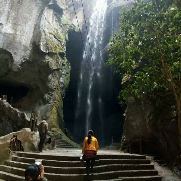 售票员态度非常好。自然条件不错,景色也好,特别是里面的瀑布,就像一条银龙从天而降自然条件不错,景色也好,特别是里面的瀑布,就像一条银龙从天而降。就是环境感觉有点破旧,那些历史故事的雕塑缺少清理。售票员态度非常好。