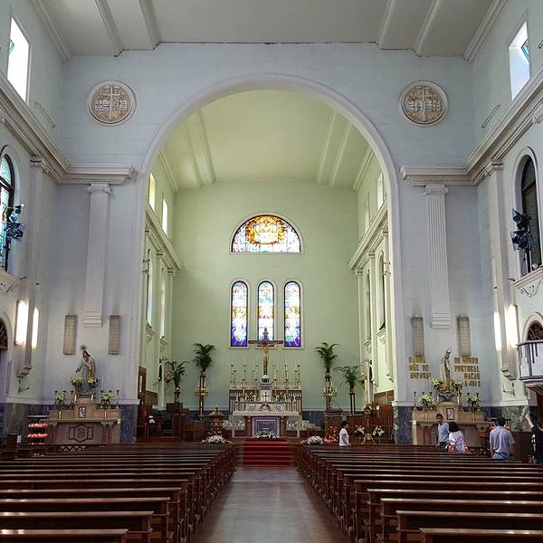 实用 我意外发现它旁边竟然有一栋美丽的葡式建筑物,黄色的外墙看着非常赏心悦目,看介绍说,这里是大堂的...澳门市区里面最宏伟的教堂!大堂也称为主教座堂,它位于澳门最繁华的新马路的边上,就在新马路恒友鱼蛋那条斜巷一直往上走,走到顶就能立刻看到了,或者乘坐公交2路;5路;6路;16路等到南湾大马路/时代-公交车站后...澳门市区里面最宏伟的教堂!大堂也称为主教座堂,它位于澳门最繁华的新马路的边上,就在新马路恒友鱼蛋那条斜巷一直往上走,走到顶就能立刻看到了,或者乘坐公交2路;5路;6路;16路等到南湾大马路/时代-公交车站后,再向前走30米左右,就会看到一条大堂斜巷,沿着斜巷一直往上走,走到顶也能看到的。大堂是灰白灰白的颜色的,是一座三层高的建筑物,虽然外观没有过多的装饰,但是看着确实特别庄严。平时周日我过来都是免费开放的,今天可能有些原因就关闭了。平时进去里面是不能带食物饮料的,而且最好把手机和相机收起来,因为平时在门口会有位黑人保安在检查,而且进去以后一定要保持安静,不要妨碍到其它人做祈祷。游客主要是能在一楼的区域活动,那里有很多木椅子给信者祈祷。里面也主要是白色的墙身,比较简单,但是两边的高墙上也能看到颜色鲜艳的窗子。而在教堂的左边由于今天没能进入大堂里面,我意外发现它旁边竟然有一栋美丽的葡式建筑物,黄色的外墙看着非常赏心悦目,看介绍说,这里是大堂的主教办公的地方,而这里由于也是不能进入的,所以不确定里面是什么,但是整个建筑的外观和建筑物外的小花园真的非常漂亮,值得在这里拍照留念噢,如果有机会来大堂参观的人,也不要错过这座美丽的主教公署,就在旁边噢! 展开