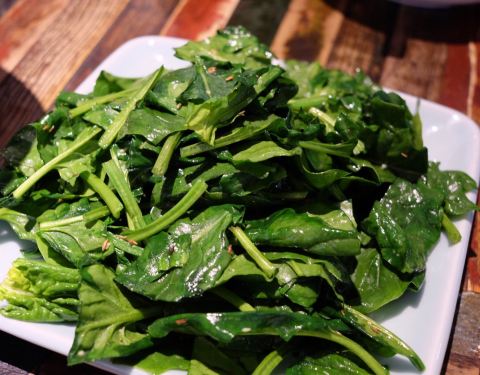 孜然菠菜相对而言味道还不错,有种烤蔬菜的感觉,上面撒上了孜然粉,咸淡也正好,稍稍偏生的口感吃...