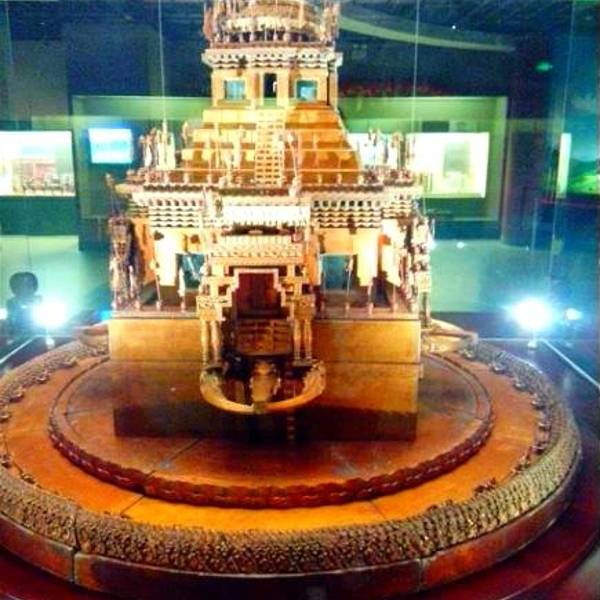 走进这层,迎面的非物质文化遗产雕塑,带着千年前的时光席卷而来,仿佛置身于《星际穿越》里的五维空间,我看着这些隔在玻璃柜里的文物,感觉自己就是时间的旅人。