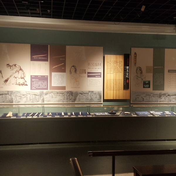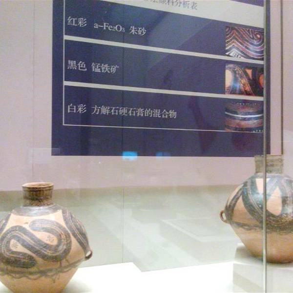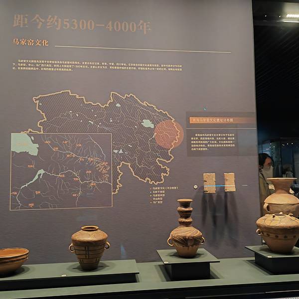 江河源文明展馆主要是历史文物。青海省是中华文明的发源地之一,所以出土了不少珍贵的陶器,青铜器等。印象比较深的是纹彩陶盆,用简单的线条勾勒出动物和人物的图像。而且图形随着时代还不断地变化,愈加复杂,证明人类的审美情趣也在不断进步。还有一碗四千年前的面条也很有趣,这是迄今为止发现的最早的面条了,跟现在的面条一模一样。另外,乐器给我的印象也很深,馆里展有好几种乐器,包括早期新石器时代的彩陶鼓,还有青铜器时代的一个石磬,非常大又规则的一块石头,有一个孔可以吊起来敲击发音。看来人类从很早就开始追求精神生活的享受了,而且还利用聪明才智因地制宜地发明了乐器,真是了不起。