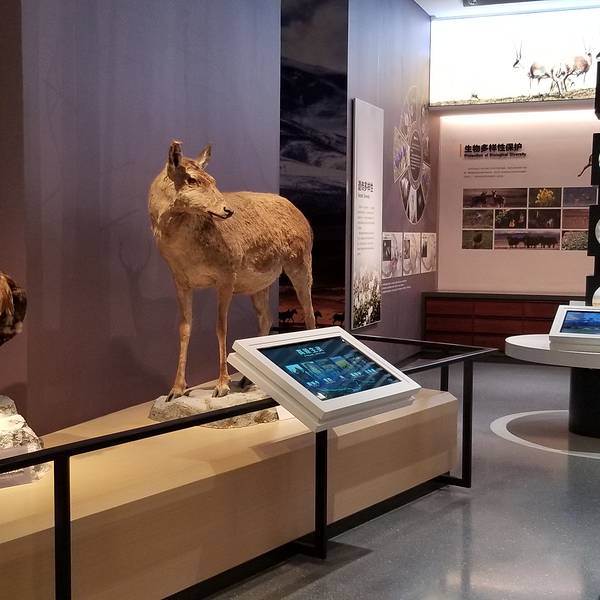 馆内有三层,一楼卖纪念品及相关书籍,三楼不对外开放。主要展品在二楼,包括江河源文明和非物质文化遗产两部分。